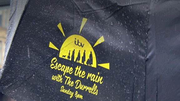 Through water-activated paint, screenings and umbrellas, we used the April rain as our biggest ally to promote The Durrells.